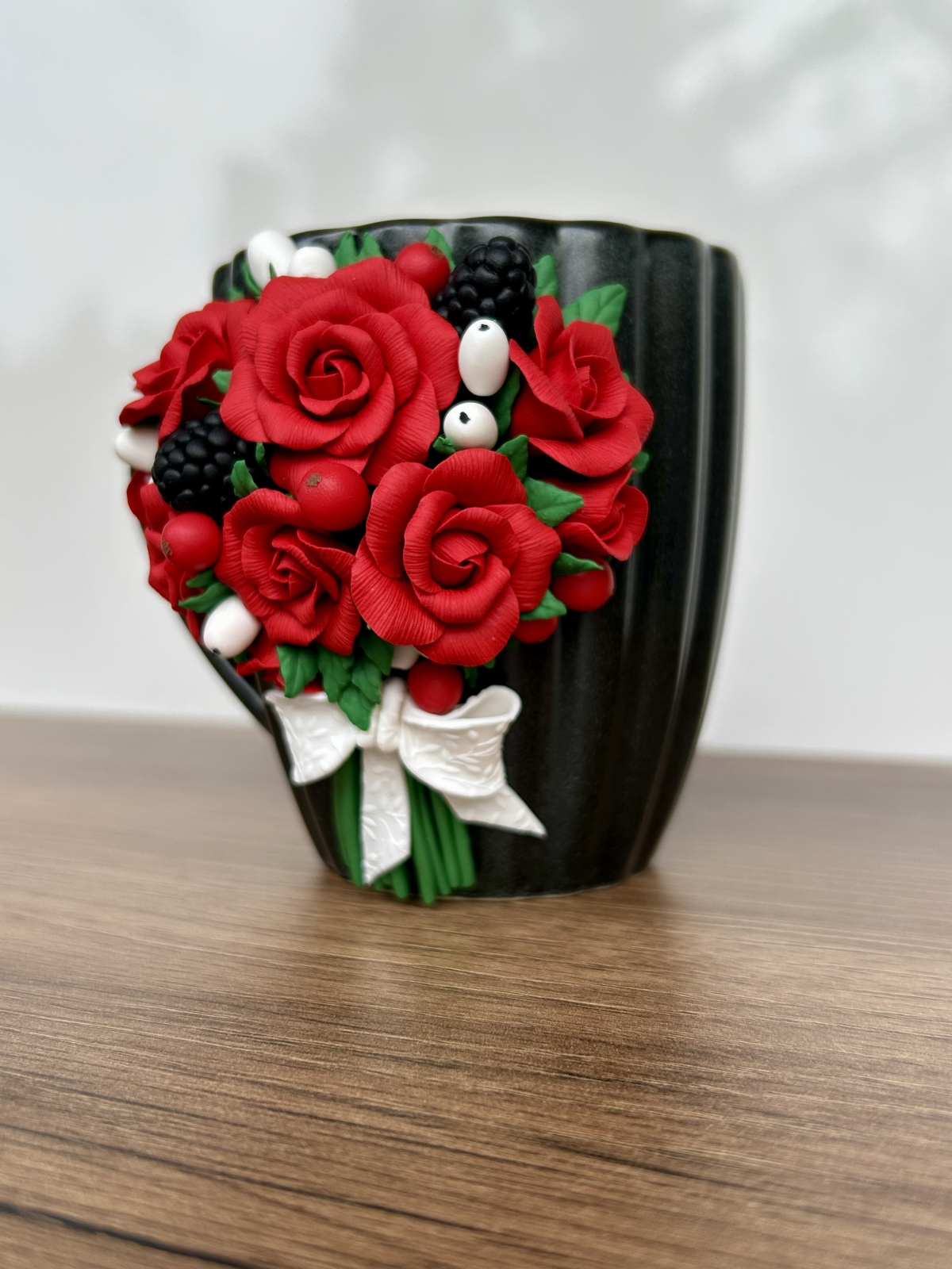 Rose - Cana cu decor de flori modelate din lut polimeric - fiecare floare ce prinde viata si contur in mainile mele spune cate o poveste diferita, e realizata manual, menita sa aduca bucurie.