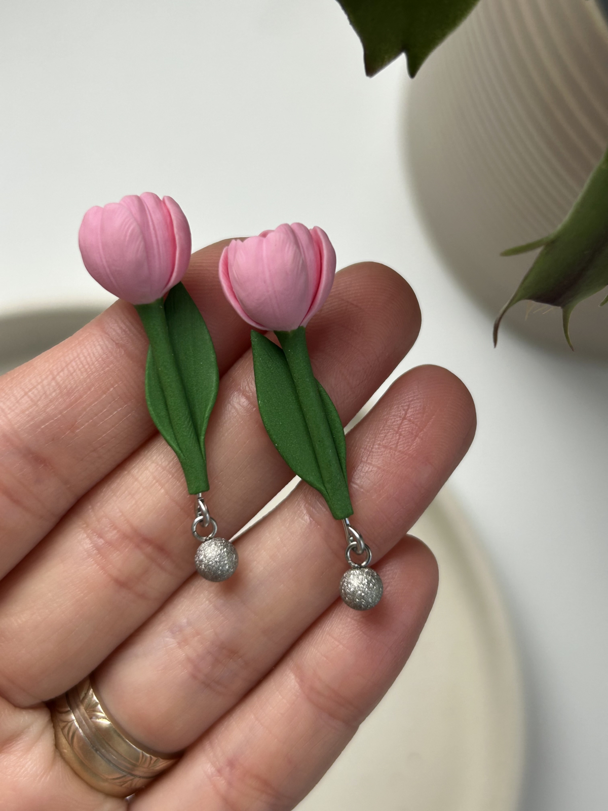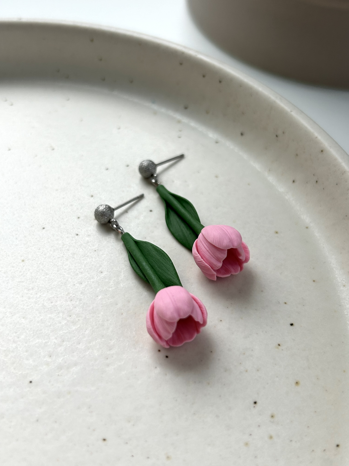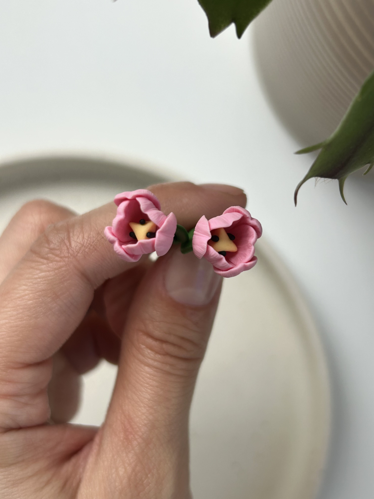 Lalea, cercei modelati manual din lut polimeric, cu prindere pe stud
